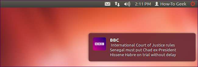 Ubuntu hat seit Ubuntu 12.10 eine Web-App-Integration. Wenn Sie eine unterstützte Site besuchen, werden Sie gefragt, ob Sie Integrationsfunktionen installieren möchten. Sie können beispielsweise die BBC News-Website in Ihrem Browser besuchen und die Web-App-Integration aktivieren. Sie erhalten dann Desktop-Benachrichtigungen mit neuen BBC-Schlagzeilen.