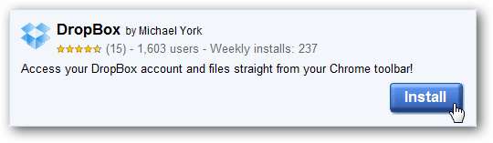 Um Dropbox von Chrome aus zu verwenden, rufen Sie die DropBox-Erweiterungsseite auf und klicken Sie auf Installieren .