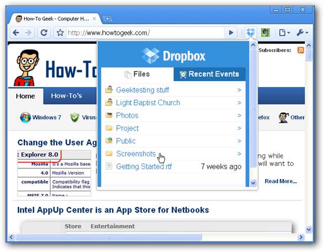 Möchten Sie schnell auf Ihre Dropbox-Dateien zugreifen, während Sie Web-Apps in Chrome durchsuchen oder verwenden? Hier ist eine nette Erweiterung, mit der Sie im Browser schnell auf Ihre Dropbox zugreifen können.