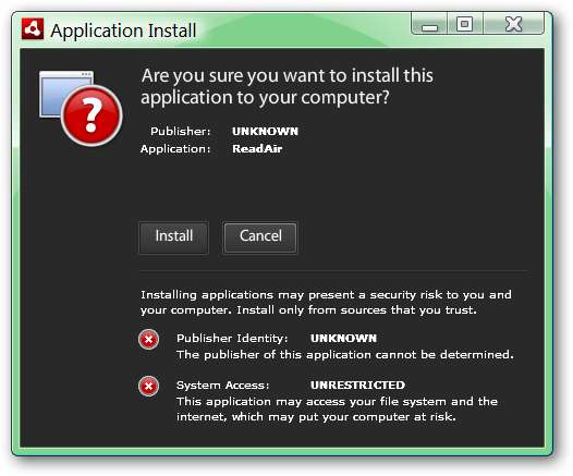 Während des Installationsvorgangs müssen drei Fenster sortiert werden. Im ersten werden einige grundlegende Informationen zu ReadAir angezeigt. Klicken Sie auf „Installieren“, um die ersten Schritte zu starten.
