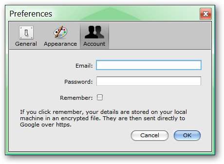 Wählen Sie das Thema aus, das Sie verwenden möchten (MacOS oder Windows), und aktivieren / deaktivieren Sie das Speichern der Fensterposition im „Darstellungsbereich“. Der „Kontobereich“ entspricht dem oben gezeigten ursprünglichen Anmeldebereich.