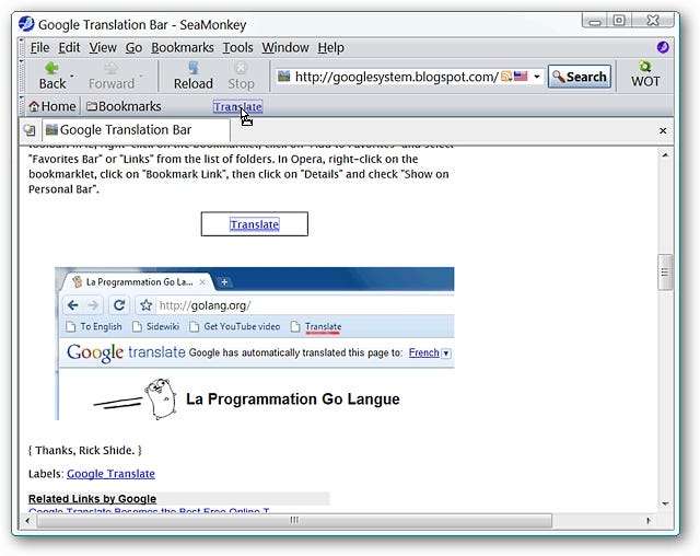 In unserem Beispiel haben wir beschlossen, das Lesezeichen zu SeaMonkey hinzuzufügen. Um es Ihrem bevorzugten Browser hinzuzufügen, ziehen Sie das Lesezeichen einfach in die "Lesezeichen-Symbolleiste" Ihres Browsers.