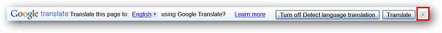 Durch Klicken auf das Lesezeichen wird die Google Übersetzungsleiste geöffnet. Die Symbolleiste wird mit der Standardeinstellung "Nach Englisch übersetzen" angezeigt. Auf Wunsch können Sie "Sprachübersetzung erkennen" deaktivieren. Beachten Sie, dass Sie die Symbolleiste einfach mit dem kleinen „x“ am Ende der rechten Seite schließen können, wenn Sie sie nicht mehr aktiv benötigen.