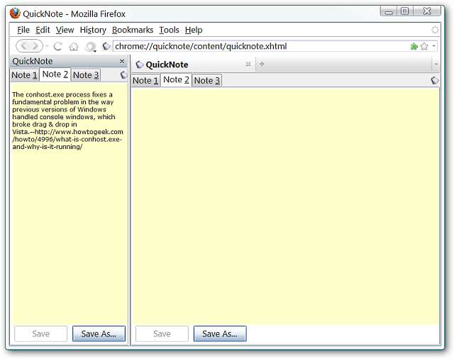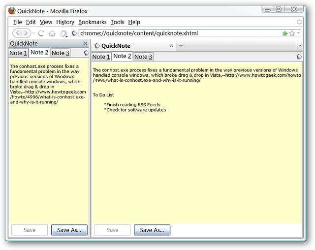 Es besteht die Möglichkeit, dass Sie nicht "mehrere Instanzen" von QuickNote verwenden, aber für diejenigen, die hier neugierig sind, ist dies das, was Sie erwarten sollten. Änderungen, die an der ersten Instanz vorgenommen und gespeichert wurden, werden in der anderen Instanz nicht automatisch angezeigt. Aber das ist kein Grund zur Sorge. Die Änderungen werden in allen Fällen beim nächsten Öffnen Ihres Browsers angezeigt. Denken Sie daran, alle Ihre Änderungen zu speichern ...