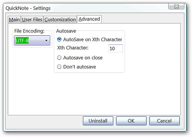 Wählen Sie die „Standardnotiz“ aus, an die Text gesendet werden soll, die „Anzahl der Notizen“, die Sie aktivieren möchten, welche Versionen von QuickNote Sie mit der Hotkey-Kombination / Symbolleistenfunktion öffnen möchten und ob Sie die Option „Speichern“ möchten & Speichern unter Schaltflächen ”angezeigt.