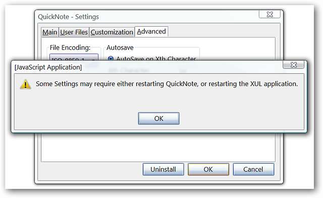 Bei einigen Änderungen in den Einstellungen wird empfohlen, QuickNote oder die XUL-Anwendung neu zu starten. Ein guter Neustart des Browsers funktioniert gut und macht Sie einsatzbereit.