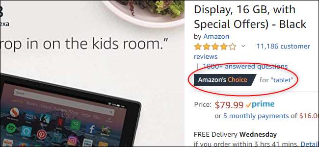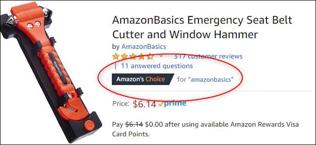 Niemand weiß, wie Choice-Artikel ihre Bezeichnung erhalten, aber Sie können normalerweise vorhersagen, welche Artikel die Choice-Bezeichnung haben, bevor Sie eine Suche durchführen. Fragen Sie sich einfach: "Verkauft Amazon eines davon?"