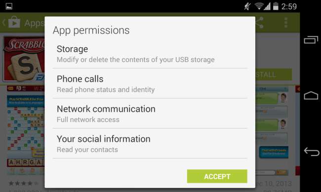 Bei der Installation einer App haben Sie eine einzige Auswahl. Sie können wählen, ob Sie die angeforderte Berechtigung erteilen oder die App einfach nicht installieren möchten. In einer perfekten Welt, in der Apps nur nach Berechtigungen fragten, die sie benötigen, wäre dies in Ordnung. In der realen Welt funktioniert dies überhaupt nicht gut.