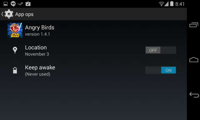 Android 4.3 gebracht eine versteckte Funktion namens App Ops . Dies wurde nicht direkt in der Android-Benutzeroberfläche angezeigt, bot jedoch eine integrierte Möglichkeit, um App-Berechtigungen einfach zu verwalten, ohne Ihr Gerät zu rooten. Sie können beispielsweise ein kostenloses Spiel installieren und dann App Ops besuchen, um zu verhindern, dass dieses Spiel auf Ihre Kontakte oder den GPS-Standort zugreift.