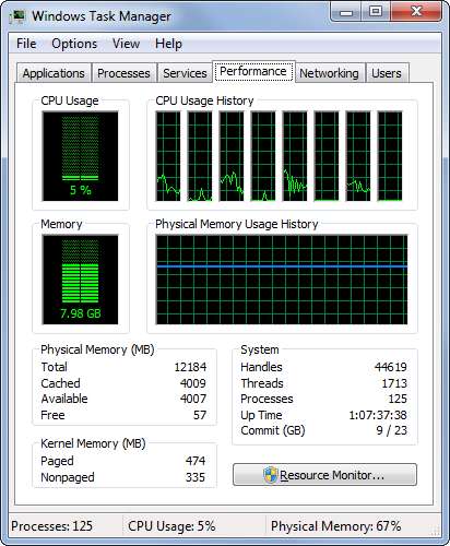 Unter Windows 8 oder 10 finden Sie diese Informationen auch auf der Registerkarte "Leistung".