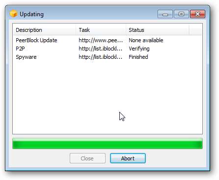 Sie sehen ein Popup und Ihre ausgewählten Blocklisten werden automatisch aktualisiert. Sobald sie fertig sind, wird die Schließen Die Schaltfläche wird nicht ausgegraut und Sie können darauf klicken.
