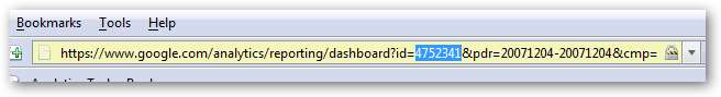 Mit einer kleinen Änderung können Sie dasselbe Lesezeichen für Ihren eigenen Gebrauch verwenden. Sie müssen lediglich die ID im Lesezeichen durch die ID für Ihr Analytics-Konto ersetzen. (Beachten Sie, dass Sie dies zu Ihrem Vorteil nutzen können, um separate Lesezeichen für mehrere Konten zu erstellen.)
