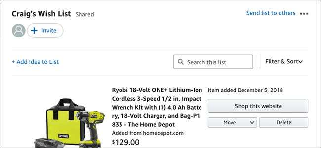 Nach dem Hinzufügen klickt der Gifter anstelle einer Schaltfläche "Kaufen" für ein typisches Amazon-Produkt auf "Diese Website einkaufen", um zur Produktseite des gewünschten Artikels zu gelangen, obwohl er sich auf einer völlig anderen Website befindet.