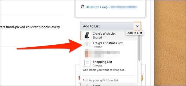 Wählen Sie dort Ihre Weihnachtsliste aus dem Dropdown-Menü. Dieser Artikel wird sofort zur Liste hinzugefügt.