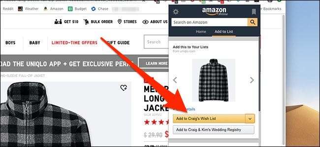 Nach der Installation können Sie die Website aufrufen, auf der das Produkt verkauft wird, und dann mit Amazon Assistant den Artikel zu Ihrer Amazon-Wunschliste hinzufügen.