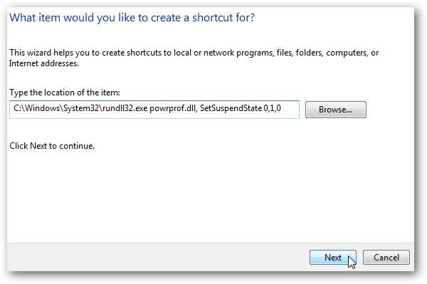 C: \ Windows \ System32 \ rundll32.exe powrprof.dll, SetSuspendState 0,1,0