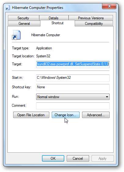 Wählen Sie die Registerkarte Verknüpfung und klicken Sie auf die Schaltfläche Symbol ändern.