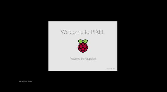Fast sofort sehen Sie, wie die Startsequenz schnell vorbeirollt - ähnlich wie in der obigen Ansicht. Wenn Sie jedoch die Pixel-Version von Rasbian Jessie ausführen, wird die Ansicht schnell durch einen einfachen Begrüßungsbildschirm ersetzt: