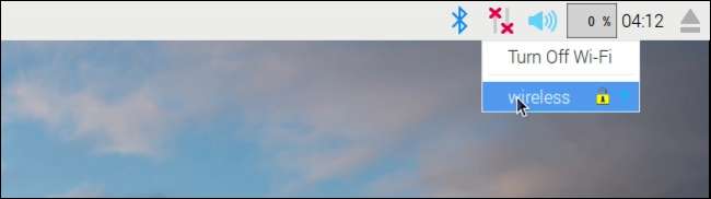 Wenn Sie über Ethernet mit Ihrem Heimnetzwerk verbunden sind, fahren Sie mit dem nächsten Abschnitt "Testen des Netzwerks" fort. Wenn Sie die drahtlose Verbindung konfigurieren müssen, suchen Sie nach dem Netzwerksymbol in der oberen rechten Ecke des Bildschirms und klicken Sie darauf:
