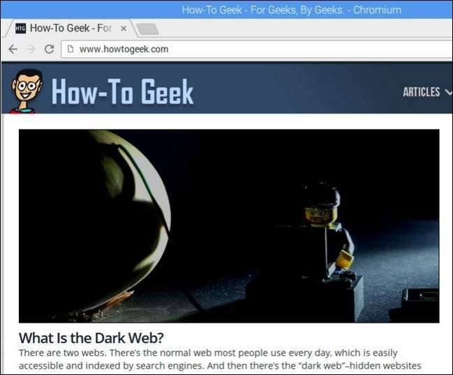Erfolg! Wir haben nicht nur Netzwerkkonnektivität, sondern How-To Geek sieht auf dem leichten Pi genauso gut aus wie auf einem vollwertigen Desktop. Dies wird wahrscheinlich das erste von vielen Malen sein, bei denen Sie überrascht und zufrieden sind, wie leistungsfähig Ihr neuer kleiner Mikrocomputer ist.