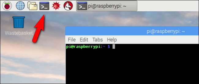 Obwohl die Benutzeroberfläche von Pi und Pixel im Vergleich zum alten Desktop sehr schön ist, müssen Sie sich im Terminal ab und zu die Hände schmutzig machen - und das Aktualisieren ist eine dieser Zeiten. Klicken Sie auf das Terminalsymbol in der oberen linken Ecke des Bildschirms, um das Terminal zu starten.