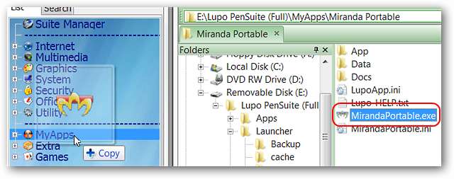Ziehen Sie die Exe-Datei der tragbaren App per Drag & Drop in den Abschnitt MyApps im ASuite-Fenster.