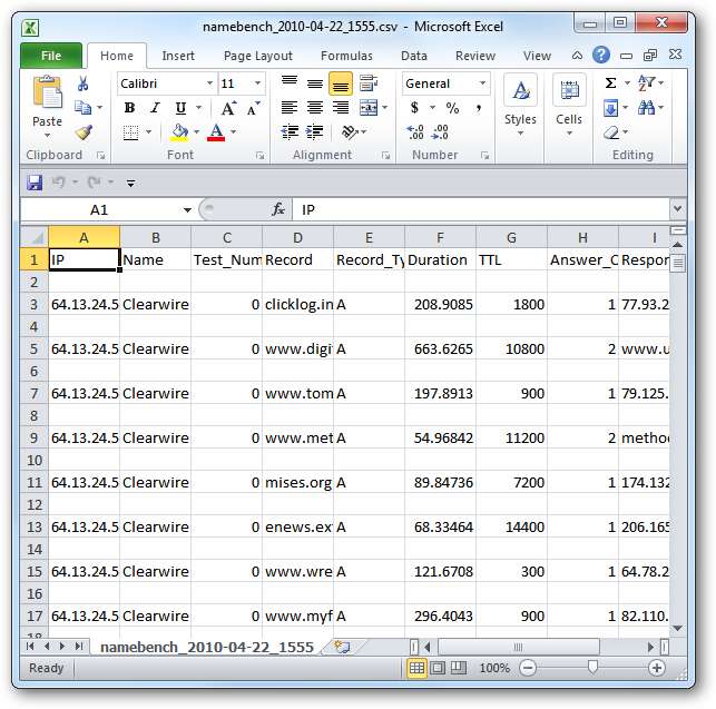 Sie können die Ergebnisse auch in eine CSV-Datei exportieren, um die Ergebnisse in Excel darzustellen.