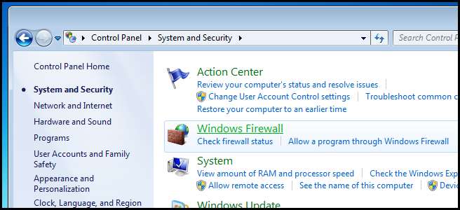 Standardmäßig löscht die Windows-Firewall wie die meisten anderen unerwünschten eingehenden Datenverkehr. Um dies zu verhindern, können Sie in den Firewall-Regeln eine Ausnahme einrichten. Das Problem bei diesem Ansatz besteht darin, dass Sie die Portnummern und Transportprotokolle wie TCP und UDP kennen müssen. Mit der Windows-Firewall können Benutzer, die mit dieser Terminologie nicht vertraut sind, stattdessen Anwendungen auf die Whitelist setzen, die Sie im Netzwerk kommunizieren möchten. Öffnen Sie dazu erneut die Systemsteuerung und gehen Sie zum Abschnitt System und Sicherheit.
