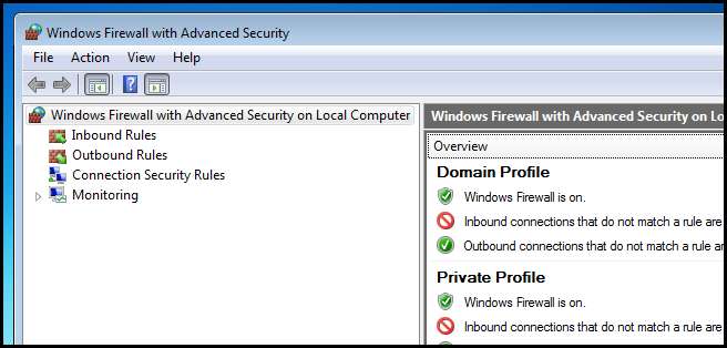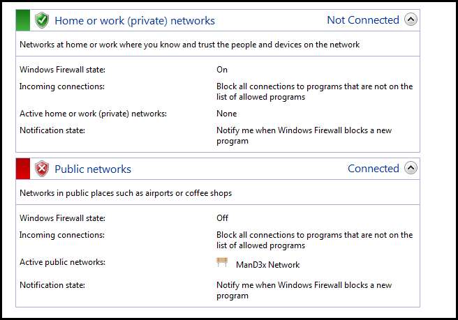 Auf der rechten Seite sehen Sie die beiden Firewall-Profile, die von Network Location Awareness verwendet werden.