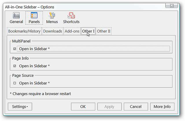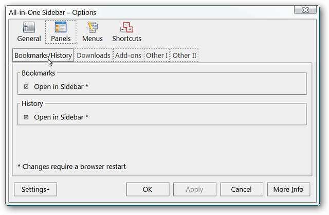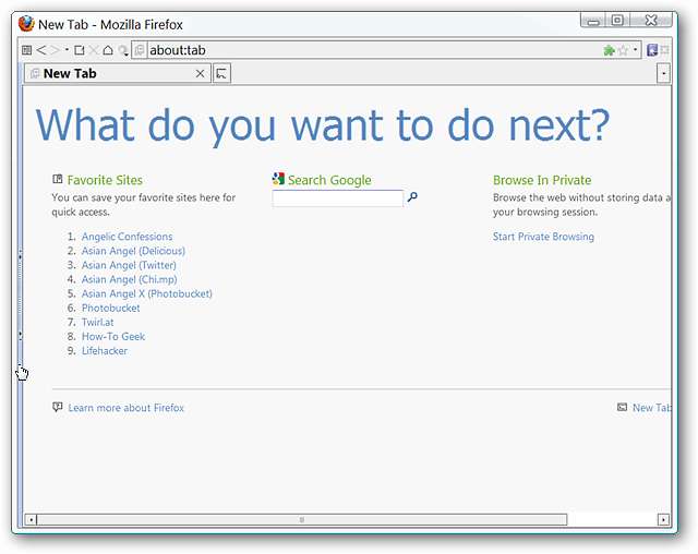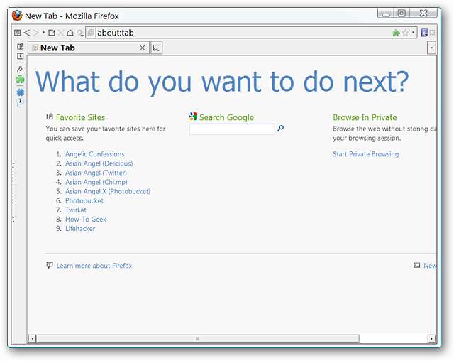 Sobald Sie die Erweiterung installiert und Firefox neu gestartet haben, wird die Webseite für die Neuinstallation angezeigt. Die "Erweiterungsseitenleiste" wird auch angezeigt, um sofortigen Zugriff auf die Optionen der All-in-One-Seitenleiste zu ermöglichen, wenn Sie zu diesem Zeitpunkt mit dem Anpassen beginnen möchten.