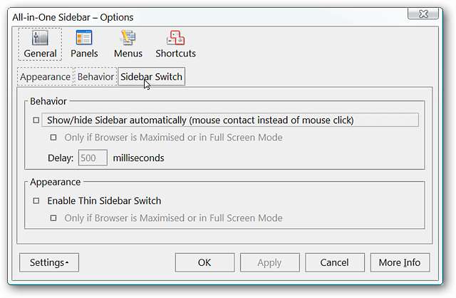 Die Erweiterung enthält eine schöne Auswahl an Optionen, mit denen Sie die All-in-One-Seitenleiste an Ihre persönlichen Bedürfnisse anpassen können. Die ersten beiden Optionsbereiche enthalten mehrere Unterregisterkarten.