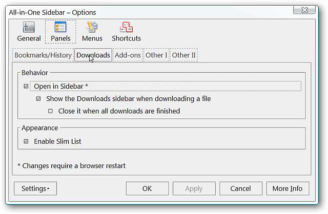Gefolgt von den "Downloads & Extensions Panels". Momentan werden die Add-Ons im Slim-List-Modus angezeigt…
