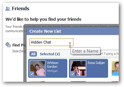 Zunächst möchten Sie der Liste einen Namen geben. Ich habe "Versteckter Chat" ausgewählt, da dies logisch erscheint. Fügen Sie als Nächstes Ihre nervigen Familienmitglieder und Mitarbeiter sowie alle Personen, die keine köstlichen Reuben-Sandwiches essen, zur Liste hinzu.