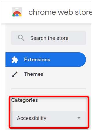 Gehe zum Chrome-Webstore und wählen Sie dann "Barrierefreiheit" aus dem Dropdown-Menü unter "Kategorien".