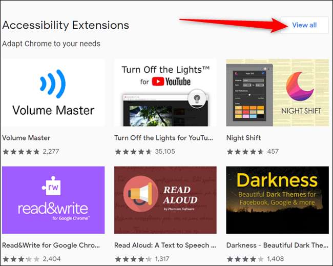 Klicken Sie auf "Alle anzeigen", um die vollständige Liste der Barrierefreiheitserweiterungen anzuzeigen.