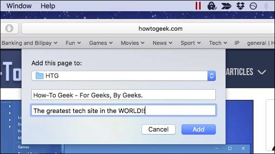 Sie werden diese Funktion zum ersten Mal bemerken, wenn Sie ein neues Lesezeichen speichern, indem Sie entweder auf das Menü "Lesezeichen" klicken und "Lesezeichen hinzufügen" auswählen oder die Tastenkombination Befehl + D verwenden.