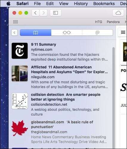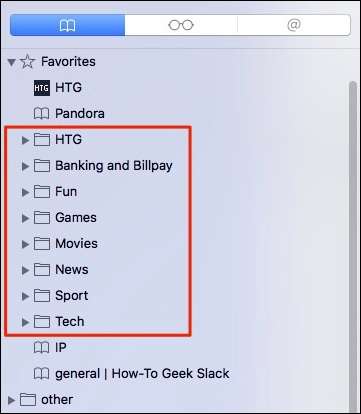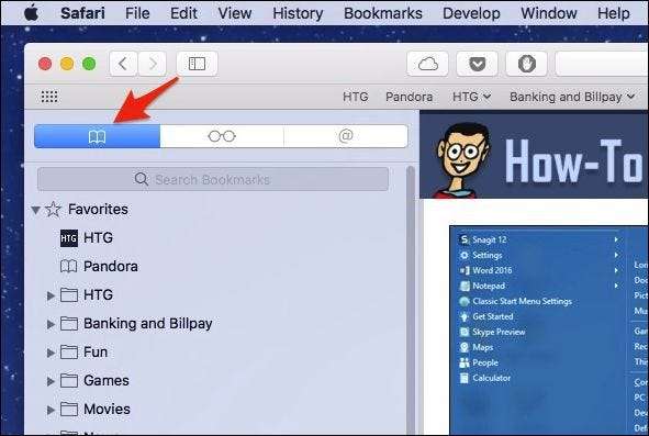 Sobald die Seitenleiste angezeigt wird, möchten Sie auf den enthaltenen Ordner doppelklicken, nicht auf das eigentliche Lesezeichen. Wenn Sie auf ein Lesezeichen doppelklicken, wird es einfach in Safari geöffnet.