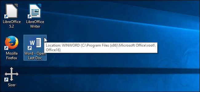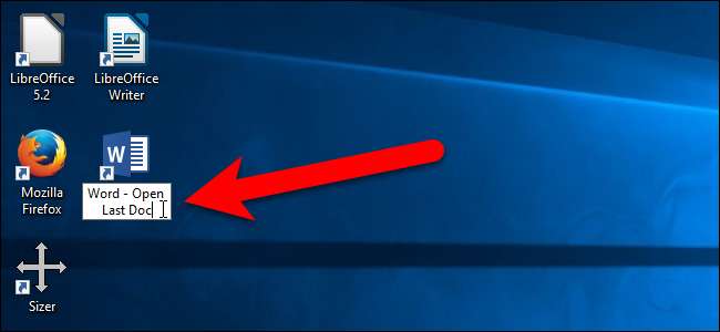 Ihre erste Option besteht darin, eine separate Verknüpfung mit einem speziellen Schalter zu erstellen, der das letzte in Word geöffnete Dokument öffnet. Wenn Sie diese Verknüpfung verwenden, wird Word für das neueste Dokument geöffnet.