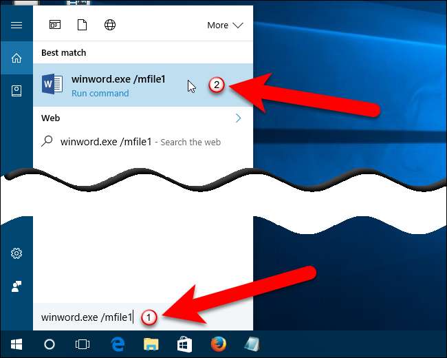 Vielleicht möchten Sie Ihrem Desktop keine weitere Verknüpfung hinzufügen. In diesem Fall können Sie das neueste Dokument in Word entweder über das Feld Suchen / Cortana oder über das Dialogfeld Ausführen öffnen. Um das Such- / Cortana-Feld zu verwenden, klicken Sie in der Taskleiste auf das Cortana-Suchsymbol (oder auf das Suchsymbol, falls vorhanden) deaktivierte Cortana ) und geben Sie Folgendes in das Feld ein: