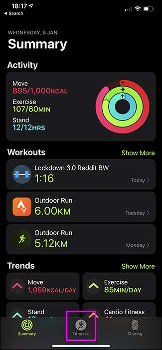 Öffnen Sie die "Fitness" -App auf Ihrem iPhone oder iPad und gehen Sie zum Abschnitt "Fitness +".