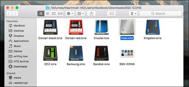 - Dieser Forumsbeitrag hat eine Sammlung von Symbolen für verschiedene Solid-State-Laufwerke, einschließlich des Intel-Symbols, das ich in den obigen Abbildungen verwendet habe. Es ist perfekt, wenn Sie einem älteren Mac Ihr eigenes Solid-State-Laufwerk hinzugefügt haben und diese Tatsache ein wenig demonstrieren möchten.