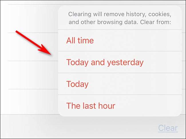 Nachdem Sie sich auf "klären" tippen, gibt Ihnen ein weiteres Pop-Up noch eine andere Wahl. Sie können "Heute und gestern" alle Zeit "," heute, "oder" die letzte Stunde "auswählen.