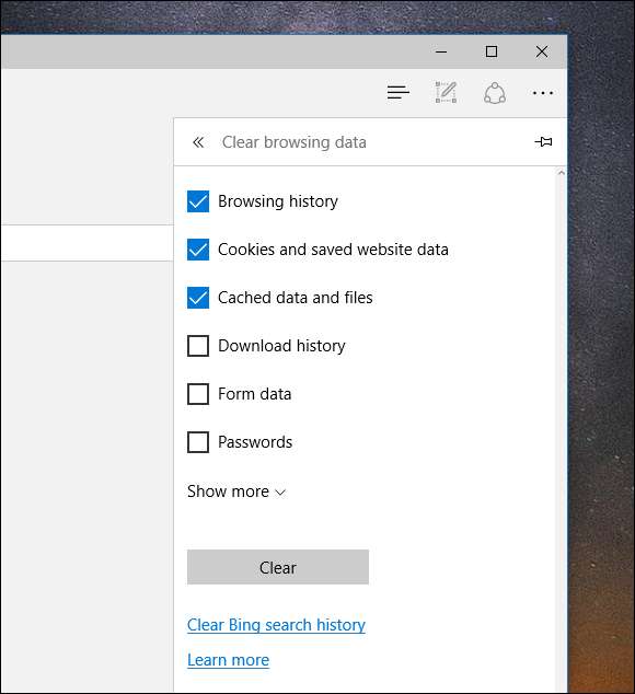 Wenn Sie alle Ihre Auswahl getroffen haben, klicken Sie auf die Schaltfläche "Löschen". Ihr Browserverlauf wird in Vergessenheit geraten. Denken Sie daran, sobald Edge wieder im Internet surft, zeichnet Edge Ihren Verlauf erneut auf, sodass Sie Ihren Verlauf weiterhin wie oben beschrieben löschen müssen.