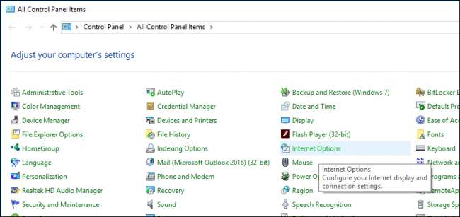 Das Löschen des IE-Browserverlaufs kann über die Windows-Internetoptionen erfolgen, auf die auf zwei Arten zugegriffen werden kann. Wenn der IE nicht läuft, gehen Sie zur Systemsteuerung und klicken Sie auf "Internetoptionen". (Sie können auch das Startmenü öffnen und nach "Internetoptionen" suchen, um diese Seite zu erreichen.)