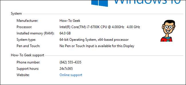 Wenn Sie Ihren PC von einem Anbieter gekauft haben, werden die Herstellerinformationen wahrscheinlich im Fenster "System" angezeigt. Aber wussten Sie, dass Sie es ändern oder sogar hinzufügen können, wenn Sie Ihre eigenen PCs bauen?