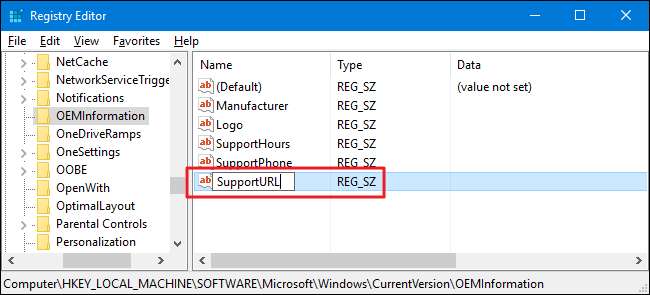 HKEY_LOCAL_MACHINE \ SOFTWARE \ Microsoft \ Windows \ CurrentVersion \ OEMInformation