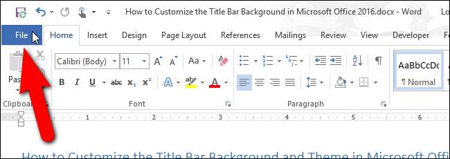 Wir zeigen Ihnen, wie Sie den Hintergrund und das Thema der Titelleiste in Word ändern. Die Vorgehensweise ist jedoch auch in Excel, PowerPoint und Outlook identisch. Klicken Sie zunächst auf die Registerkarte "Datei".