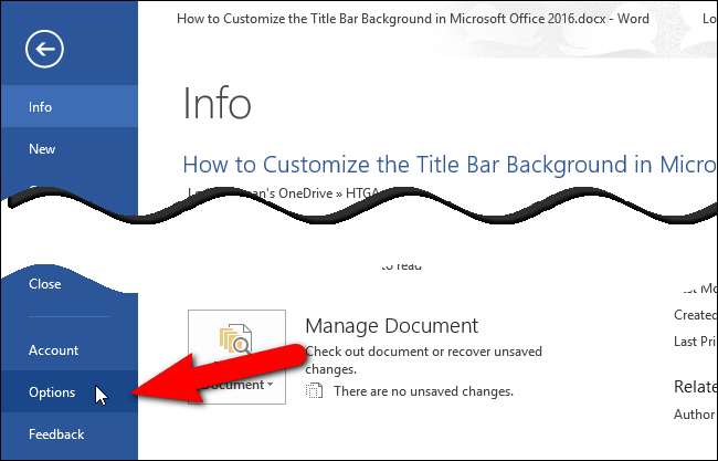 Klicken Sie im Backstage-Bildschirm in der Liste der Elemente auf der linken Seite auf "Optionen".