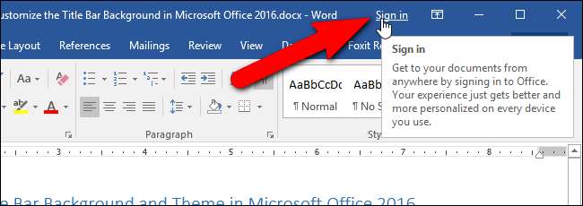 Wenn Sie in Windows 10 ein lokales Konto verwenden oder eine frühere Version von Windows verwenden, können Sie auf die Office-Hintergrundfunktion zugreifen, indem Sie sich in einem beliebigen Office-Programm über den Link „Anmelden“ auf der rechten Seite bei Ihrem Microsoft-Konto anmelden der Titelleiste.