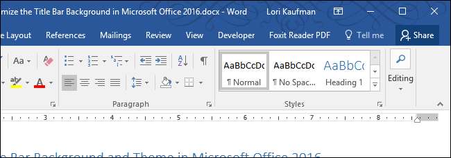Das neu ausgewählte Hintergrundbild (falls vorhanden) und das Thema werden auf die Titelleiste im aktuell geöffneten Office-Programm angewendet.